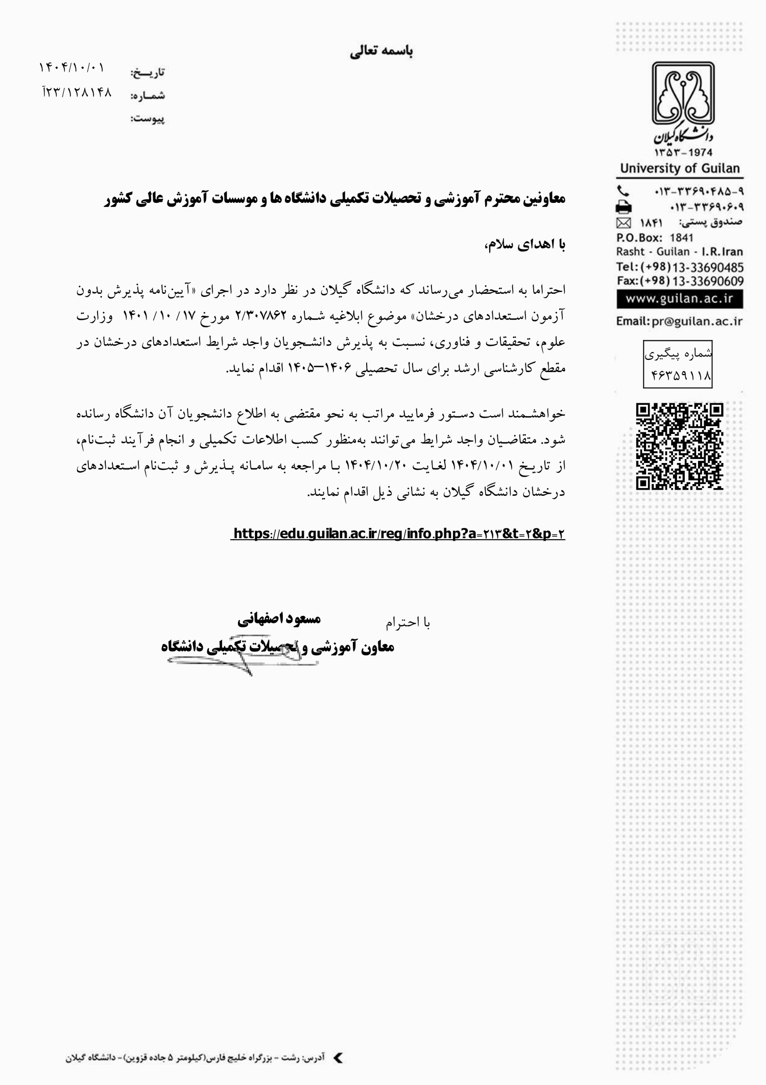 - فراخوان پذیرش بدون آزمون مقطع کارشناسی ارشد دانشگاه گیلان برای سال تحصیلی ۰۵-۱۴۰۴