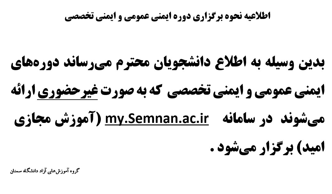 اطلاعیه نحوه برگزاری دوره ایمنی عمومی و ایمنی تخصصی