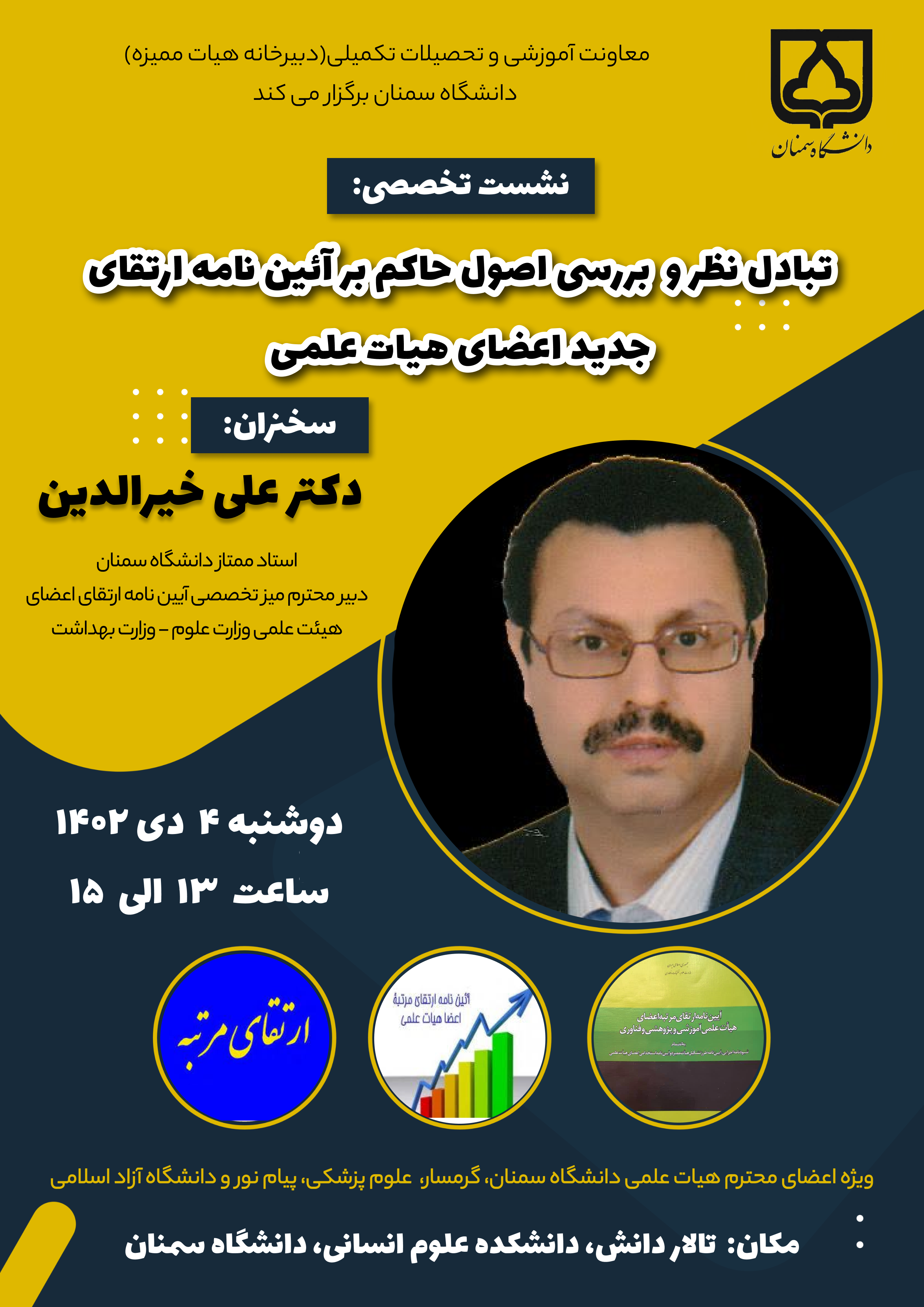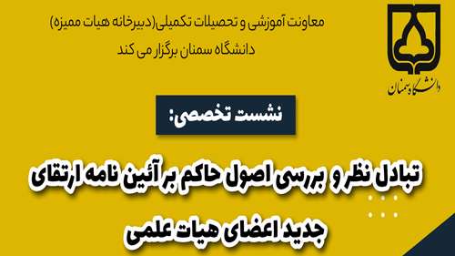 اطلاعیه نشست تخصصی موضوع تبادل نظر و بررسی آیین نامه ارتقای مرتبه اعضای هیات علمی // - 14:39 تعداد بازدید: 213 کلمات کلیدی