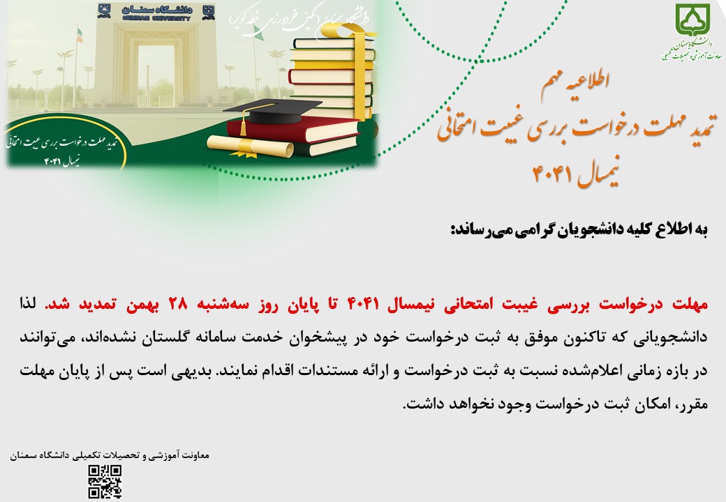تمدید مهلت درخواست بررسی غیبت امتحانی نیمسال ۴۰۴۱
